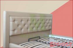 Эстетическая красота и грациозность кровати Олимп однозначно удивит и приятно Вас порадует. Несмотря на свои небольшие размеры, она кажется достаточно массивной и глобальной. Первое, на что обращаешь внимание при знакомстве с ней – высокая и интересная спинка изголовья с качественной обтяжкой.